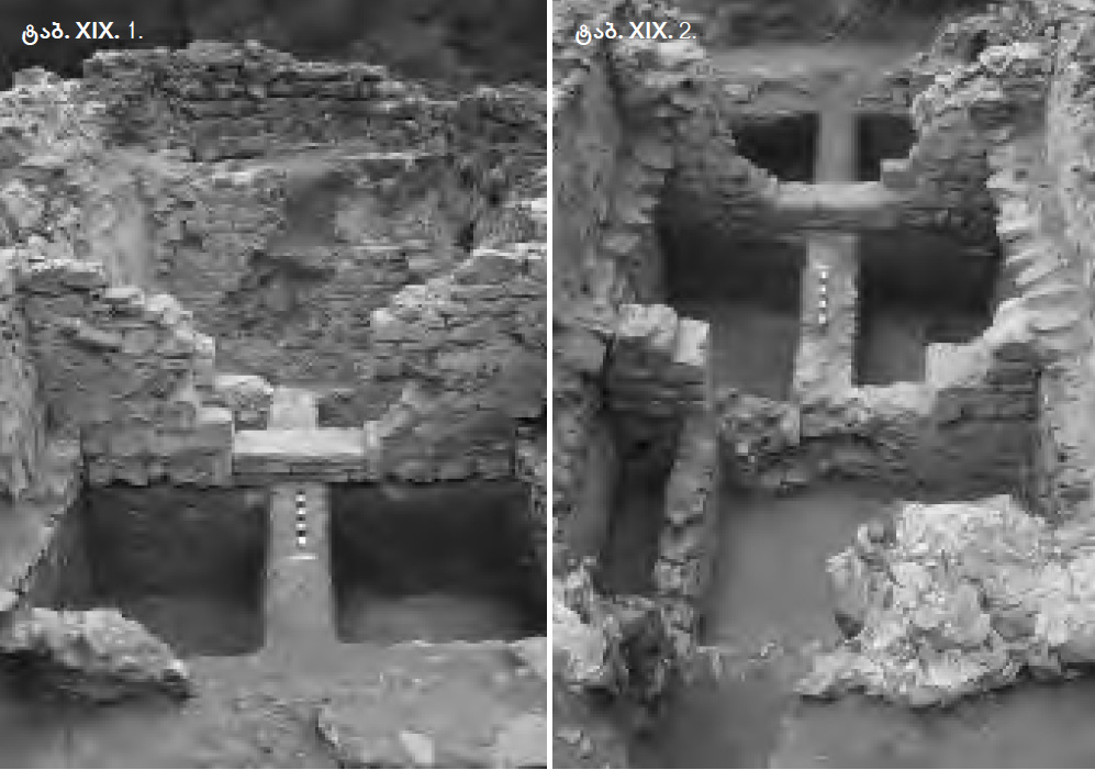 გ) პორტიკის ქვეშ, მის დასავლეთ ნაწილში გაითხარა უფრო ადრეული აფსიდის მაგვარი კონსტრუქცია, რომელიც გახსნილია დასავლეთით და აქ უერთდება კარგად მოლესილ მართკუთხა აუზს. ეს აფსიდიანი აუზი მიდგმულია მთავარი ტაძრის და სავლეთი მკლავის სამხრეთ კედელსა და სამხრეთი აფსიდის დასავლეთ ნახევარზე.
