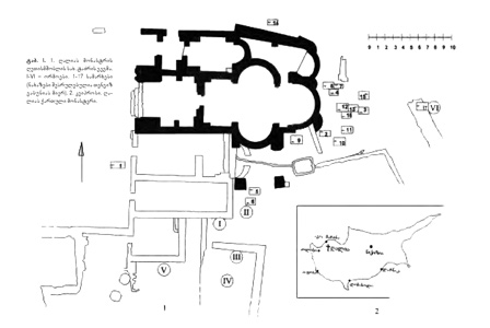 ვ) ტაძრის სამხრეთ და სამხრეთ-დასავლეთით მიმდებარე ფართობზე გაითხარა საცხოვრებელი და სამეურნეო დანიშნულების ნაგებობები. ისინი ამ ტერიტორიაზე გვიან, XVIII-XVX საუკუნეებში ჩნდებიან. მაშინ, როცა მონასტერი უკვე დიდი ხანია აღარ ფუნქციონირებდა. აქვე ჩნდება შესაბამისი პერიოდის რამდენიმე სამარხი. აღსანიშნავია, რომ როგორც ნაგებობის კედლებში, ისე სამარხებში ფიქსირდება ტაძრის მშენებლობაში გამოყენებული კირქვის, შირიმისა თუ ზღვის ქვიშაქვის გათლილი ქვები, რომელთაგან ზოგიერთზე კირხსნარის კვალიცაა შემორჩენილი. უდავოა, ეს ქვები ტაძრის უკვე დანგრეული კედლებიდან მომდინარეობენ.