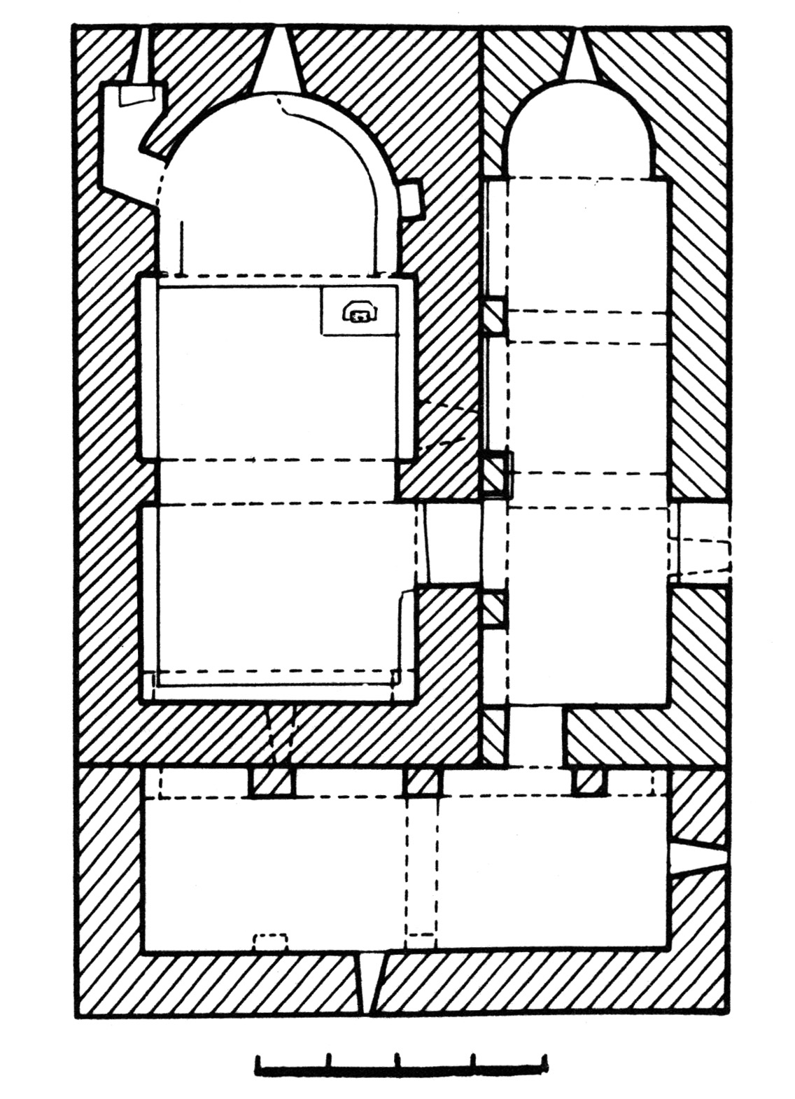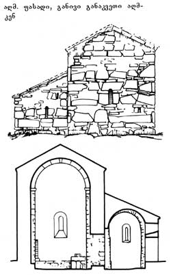 ფასადები დასრულებულია საფეხურებად ნაწყობი აგურის ლავგარდნით. შენობის სამხრეთით და დასავლეთით თითო მინაშენია. დასავლეთის მინაშენი სწორკუთხაა (შემორჩენილია მხოლოდ ქვედა ნაწილი), სამხრეთისა (კარიბჭე) სცილდება ეკლესიის სამხრეთ კედელს და დასავლეთის მინაშენის თაღოვანი შესასვლელის პირდაპირაა. ინტერიერში სამხრეთ კედელზე ორი პილასტრია. გადახურვა ჩანგრეულია.