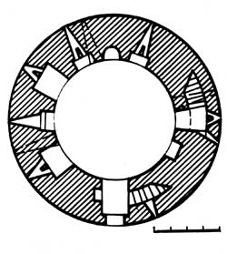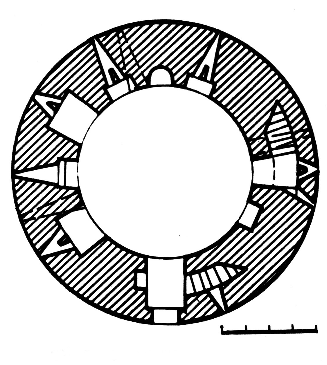 სკრის კოშკი ცილინდრულია (დიამ.10,6 მ, სიმ.8,2 მ, კედლის სისქე 2,4 მ), ორსართულიანი, ნაგებია რიყის ქვით. კარსა და სარკმლებზე გამოყენებულია თლილი ქვაც. ნაგებობას აკლია მხოლოდ ბანის კედლების ზედა ნაწილები. კოშკის შესასვლელი ჩრდილოეთით, მეორე სართულზე აქვს. პირველი სართული დამხმარე სათავსია. ამ სართულზე კედლებში დატანებულია სამეურნეო დანიშნულების ოთხი ღრმა ნიში და ორი მცირე, კვეთით მაღლა მიმართული სარკმელი.