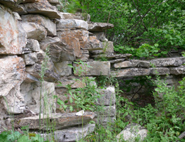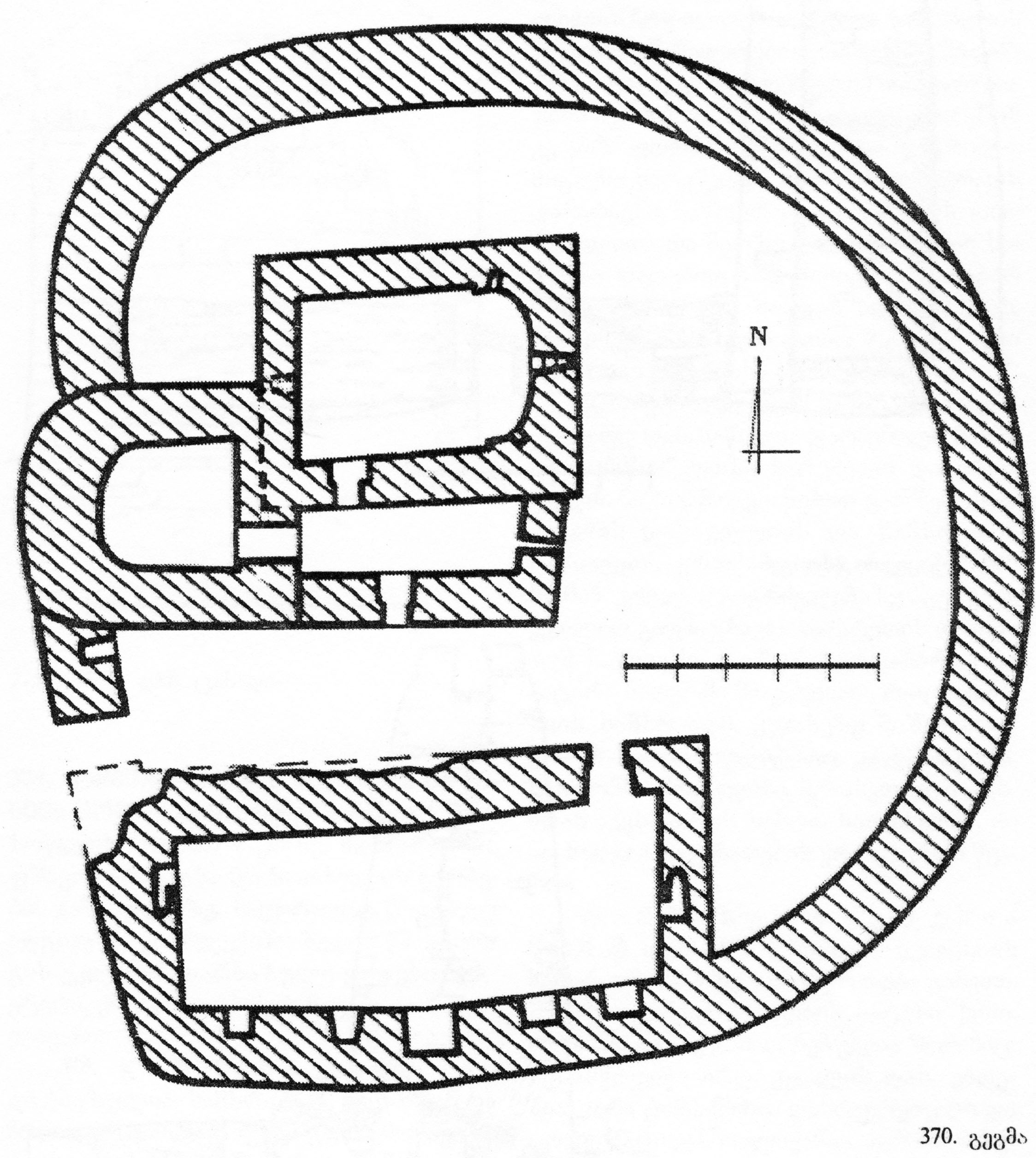 გ) გალავნის სამხრეთ ნაწილში, ეკლესიიდან ხუთიოდე მეტრზე, ჩართულია მოზრდილი (12X6,5 მ) ოთხკუთხა (როგორც ჩანს) საცხოვრებელი ნაგებობა, რომლის სამხრეთ და დასავლეთ კედლები (სიმაღლე 1,5-1,9 მ) გალავნის ნაწილს წარმოადგებს. შესასვლელი შენობას ჩრდილოეთ კედლის აღმოსავლეთ კიდესთან აქვს. აღმოსავლეთ და დასავლეთ კედლებში თითო პატარა ზომის სწორკუთხა ნიშია, სამხრეთ კედელში - ხუთი სხვადასხვა ზომის სწორკუთხა ნიში.