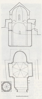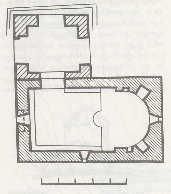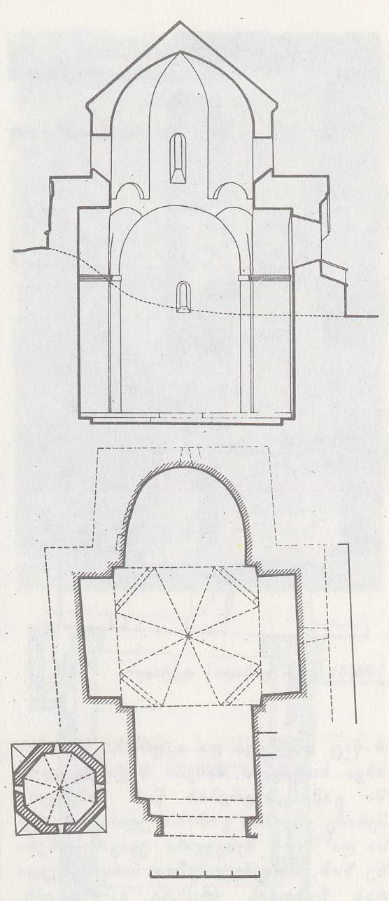 ბ) იოანე ნათლისმცემლის ეკლესია VI საუკუნის ჯვარგუმბათოვანი ნაგებობაა (13,5X7,8 მ), ნაშენია ნატეხი ქვითა და მოსწორებული რიყის ქვით. ეკლესიის ¾ ნაწილი მიწაშია. ჯვრის აღმოსავლეთ-დასავლეთის მკლავი ჩრდილო-სამხრეთისაზე გრძელია, ხოლო დასავლეთი მკლავი აღემატება აღმოსავლეთისას; ჯვრის მკლავების კამარები ოდნავ ნალისებრი მოხაზულობისაა. გუმბათი ეყრდნობა რვაწახნაგა გუმბათის ყელს, რომელშიც ოთხი სარკმელია. გუმბათის ყელი ჯვრის მკლავების კედლებზეა დაბჯენილი. კედლებიდან გუმბათის ყელზე გადასვლა კვადრატის კუთხეებში ორრიგა თაღების მეშვეობით ხდება. ქვედა ბრტყელი თაღები საზღვრავენ კუთხის აფრისებურ მომრგვალებას. კედლის სიბრტყიდან ამოზიდული ზედა, ნახევარწრიული თაღები კი ქმნიან რვა წახნაგს, რომლის თანაბარი სიგანის გვერდის კედლები ზემოთ გრძელდება და ცენტრში იკვრება. ამრიგად, გუმბათი ნახევარსფერო კი არ არის, არამედ შეკრული კამარაა, რომელიც უშუალოდ შენობის გარე კედლებს ეყრდნობა. აღმოსავლეთისა და დასავლეთის კედლებში თითო ვიწრო სარკმელია. მთავარი შესასვლელი დასავლეთით იყო (ამჟამად გადაკეთებულია). ეკლესიაში შემორჩენილი მოხატულობა შესრულებულია XIX საუკუნის 90-იან წლებში ეპისკოპოს ალექსანდრე ოქროპირიძის დაკვეთით. ამით განადგურდა ძველი მხატვრობა. ეკლესიაში შემორჩენილია ღია მწვანე ფერის მკვრივი ტუფისაგან გამოკვეთილი კანკელი, რომელიც მოგვიანებით მეტად უხეშად შეუკეთებიათ.