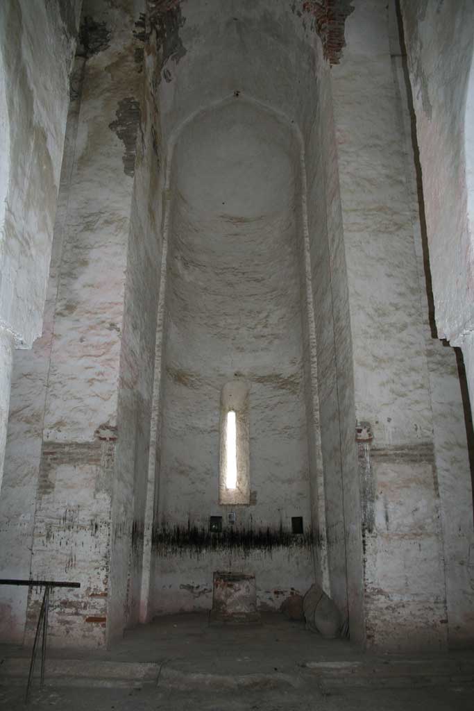 შიდა სივრცის შემქმნელი ჯვრის მკლავები გადახურულია შეისრული კამარებით. თითოეული კამარა ორ-ორ თაღს ეყრდნობა. თითო მათგანი კუთხეებზე გადადის, ხოლო თითოც შუა საყრდენადაა გამოყენებული.