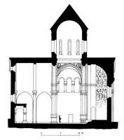 დასავლეთის მკლავი სხვებთან შედარებით უფრო გრძელი იყო. მისი გრძივი კედლები შიგნით პილასტრებით იყოფოდა ორ-ორ მონაკვეთად, რომლებზეც გადაყვანილი იყო კედლის თაღები. აღმოსავლეთის მონაკვეთებში მათ ღრმა თაღოვანი უბეების სახე ჰქონდათ. პილასტრებს ეფუძნებოდა კამარის საბჯენი თაღი.