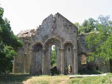 შუა, ჩრდილოეთზე ორიენტირებული წახნაგის მარჯვნივ შემოინახა ნაშთი მეორე წახნაგისა, რომლის ორიენტაციაა ჩრდილო-დასავლეთი. მისი მეტი ნაწილი უკავია სამკუთხედად შეჭრილ მაღალ და ღრმა ნიშას, 70 გრადუსიანი შიდა კუთხით. ნიშას ხურავს ნახევარკონუსური კამარა, რომლის შიდა ნაწილი ერთ დიდ ქვაშია ნაკვეთი და გაფორმებულია მარაოსებრ გაშლილი 12 რადიალური ღარით, რაც ნიჟარის ზედაპირის მსგავს სურათს იძლევა (ნიშაზე მოგვიანებით მიუშენებიათ ირეგულარული მოყვანილობის დაბრტყელებულკამარიანი სათავსი. ის დაბალია და ახლა თითქმის მთლიანად დაფარულია ნაყარი მიწით). შუა წახნაგის მარცხნივ ჩანს ჩრდილო-ჩრდილო-აღმოსავლეთ წახნაგის ვიწრო ზოლი - კედლის სიბრტყე ნიშამდე. დანარჩენს ფარავს ჩრდილოეთის მკლავზე მიდგმული ეკვდრის აფსიდი.