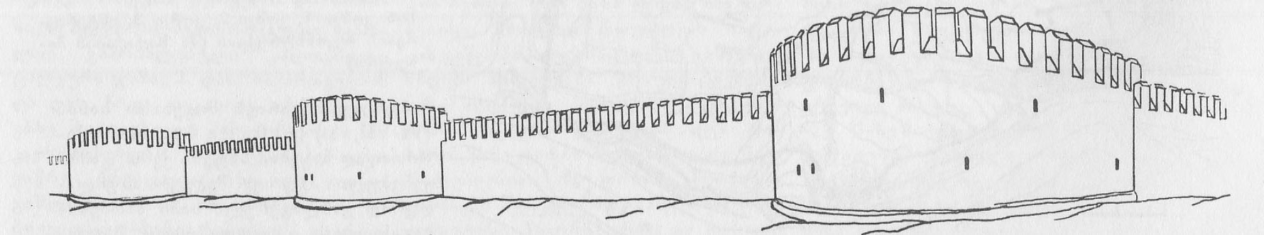 მდინარის მხარეს გარდა, დანარჩენ სამ მხარეს კედელში, ყოველ 60-65 მეტრში, ჩართულია კოშკი ნახევარწრიული შვერილით. სავარაუდოდ მთელ პერიმეტრზე 18 ასეთი კოშკი იყო. კოშკებს ჰქონდათ სამზერები, ხოლო პარაპეტიანი საბრძოლო ქონგურებით შემოსაზღვრულ გალავანს ზევით საბრძოლო ბილიკი გასდევდა. მესამე პერიოდის (მურვან ყრუს დალაშქვრის შემდგომ) გამაგრების სისტემა წარმოადგენს მიწაყრილს თხრილით. დიდი ხანძრისა და ალიზის განადგურების შემდეგ კედლის ირგვლივ ამოუღიათ თხრილი (სიღრმე 8-10 მ., სიგანე 30-40 მ.) აქედან ამოღებული მიწით კი ალიზის ზღუდეა დაფარული.