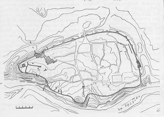 ა) გალავანი – ქალაქი ურბნისი მდინარე მტკვრის მხრიდან ბუნებრივად იყო დაცული. დანარჩენი სამი მხრიდან, გაშლილი ვაკის მხარეს, შემოვლებული ჰქონდა ზღუდე. გათხრებმა გამოავლინა ქალაქის გამაგრების სამი პერიოპდის სისტემა: ანტიკური ხანის, ადრინდელი ფეოდალურისა და ქალაქის გადაწვის შემდგომი ხანის. ქალაქს ორი მთავარი შესასვლელი ჰქონდა; ერთი ჩრდილოეთით ცენტრში დაბლობიდან, მეორე – სამხრეთით, მტკვრის მხარეს პატარა ხევიდან (მდინარეში შემორჩენილია ქვის ხიდის ბურჯები). ანტიკურ ხანაში ქალაქს უვლიდა რიყის ქვით ნაგები სქელი კედელი (ფრაგმენტი შემორჩენილია). ამ კედლის გარე პირი ვერტიკალურია, ხოლო შიდა – დაქანებული. დამწვარი რიყის ქვები მოწმობს, რომ კედელი ძლიერი ხანძრის შედეგად დანგრეულა. მეორე პერიოდის (VI საუკუნის შუა წლები ან მეორე ნახევარი) კედელი ალიზისაა (0,52X0,52X0,12 მ). კედლის პერიმეტრია 2 კმ. შემოზღუდული ტერიტორიის ფართი 23 ჰა, კედლის სისქე 4,5 მ. მიუხედავად დაზიანებისა შესაძლებელი გახდა გალავნის გეგმის აღდგენა.