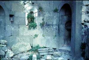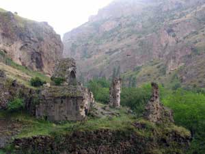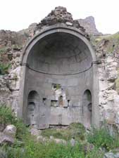 ეკლესიისაკენ მიმავალი ვიწრო ხეობა გამოქვაბულებითაა გარშემორტყმული.