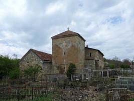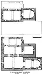 ერთ-ერთი ეკლესია ბანურსახურავიანი ორსართულიანი კოშკური ნაგებობაა, რომელსაც სამხრეთით ეკვრის დარბაზული ეკლესია, ხოლო დასავლეთით ორსართულიანი ეგვტერი სათავდაცვო ნაგებობითურთ. დარბაზულ ეკლესიაზე დასავლეთით, მთელი ეგვტერის სიგრძეზე მიშენებულია სათავსი.