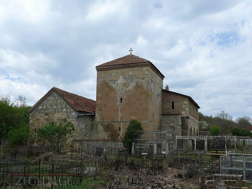 ბ) ორსართულიანი ეგვტერი ნაგებია რიყის ქვითა და აგურით. პირველ სართულზე აღმოსავლეთ და სამხრეთ კედლებში თითო ნიშია. მეორე სართულზე ნიშები ყველა კედელს აქვს. მეორე სართულზე დასავლეთის კედელზე სამი სარკმელია, ხოლო სამხრეთისაში - ორი. გადასახურად გამოყენებულია შენობის შუა მძლავრი საბჯენი თაღი და განივი კედლების საბჯენი თაღები.