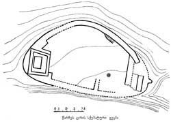 ბ) სათავსი - ციხის ორივე ბოლო ძლიერ დარღვეულია, ამიტომ ფორმებზე გარკვეული წარმოდგენის ქონა შეუძლებელია. აღმოსავლეთის ბოლოში რაღაც სათავსი აშკარად მდგარა, მაგრამ კოშკი იყო თუ რომელიღაც გრძელი სათავსი, ამ ადგილის გაწმენდამდე დაზუსტებით ვერ დადგინდება.