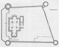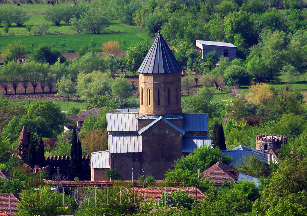 ბ) გალავანი (58X72 მ), რომელიც შემოვლებული აქვს ღვთისმშობლის ტაძარს, გეგმარების, არქიტექტურული ფორმებისა და ელემენტების მიხედვით აგებული უნდა იყოს XVIII საუკუნის II ნახევარში. ამ გალავნის გარეთ, ჩრდილოეთით და დასავლეთით, შემორჩენილია უფრო ძველი გალავნის ნაშთები. გალავნის კედლები ნაგებია სხვადასხვა ზომის რიყის ქვით. წყობაში ზოგან ჩართულია აგური და ტაძრის ორნამენტიანი ქვები. კედლები კირქვის ხსნარით ყოფილა მობათქაშებული. შესასვლელი სამხრეთიდანაა, მას აგურის თაღი აქვს. 1967-68 წლებში აღადგინეს შესასვლელი. გალავნის ჩრდილოეთ კედლის უმეტესი ნაწილი, კედლის ზემოთა მონაკვეთები და ქონგურები კოშკებზე. გალავნის აღმოსავლეთისა და დასავლეთის კედლები ორიარუსიანია. ცალმაგი ერთმანეთისაგან თანაბარი მანძილით დაშორებული სათოფურეები მხოლოდ აღმოსავლეთისა და სამხრეთის კედლებშია შემორჩენილი. სამხრეთის კედელში შემორჩენილია აგრეთვე საბრძოლო ბილიკის ხის კოჭების ჩასამაგრებელი ფოსოები. გალავნის ყოველ კუთხეში გეგმით წრიული თითო კოშკი დგას. სამხრეთ-დასავლეთის კოსკი სამსართულიანი იყო, დანარჩენები ორსართულიანი. კოშკებში შესასვლელები ეზოს მხრიდანაა. ყოველ სართულებზეა ნიშები, სათოფურები და ბუხარი. სამხრეთ-აღმოსავლეთის კოშკს გალავნის შესასვლელისაკენ მიმართული საზარბაზნეც აქვს. ამ კოშკის შესასვლელზე XIX საუკუნეში აგურის ექვსმალიანი სამრეკლოს ფანჩატური დააშენეს. ჩრდილო-დასავლეთის კოშკზე შემორჩენილია სალოდეებიც.