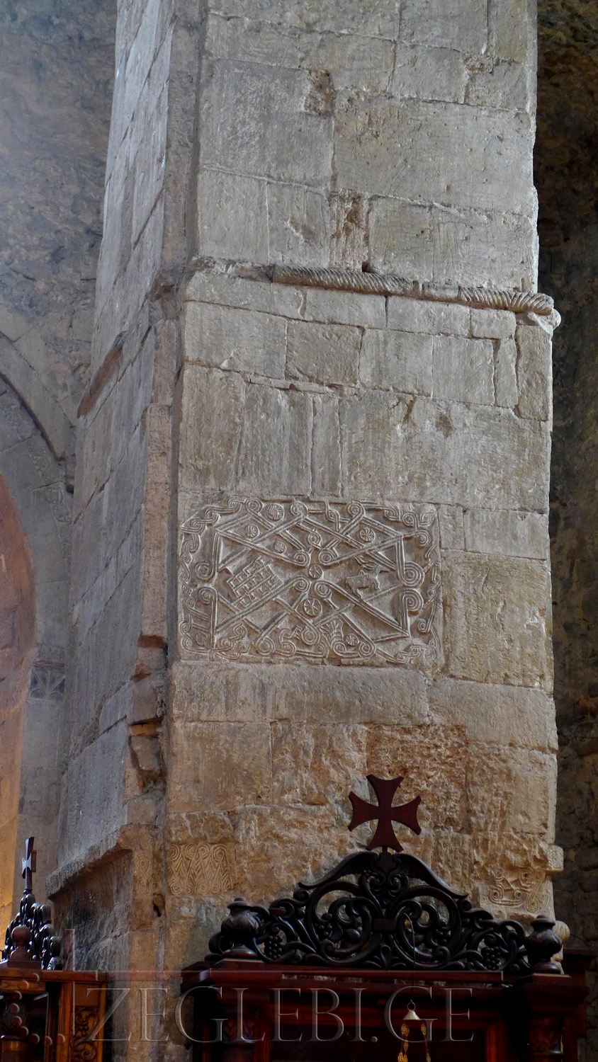 ტაძრის მორთულობიდან განსაკუთრებით საინტერესოა ბაზილიკისდროინდელი ორნამენტები, რომელთა შორის გვხდება სრულიად უნიკალური და თავისებური მოტiვები. ამ ორნამენტებს ბევრი რამ საერთო აქვთ სასანური ხელოვნების ტრადიციებთან, მაგრამ აშკარად ქართულ ნიადაგზეა გააზრებული და შესრულებული.