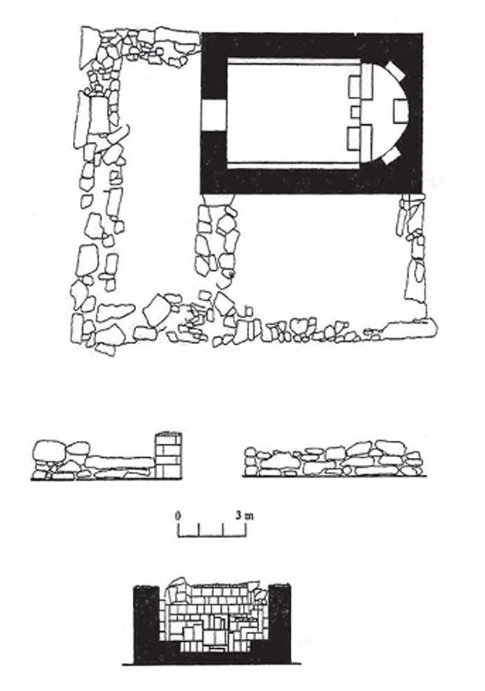 ცენტრალური სათავსოს (დარბაზის) კედლების შემორჩენილი სიმაღლე 1,5 მ-დან 2 მ-მდეა, დასავლეთის სათავსოსი 10 სმ-დან 50 სმ-მდე, სამხრეთის სათავსოდან მარტო საძირკველია შემორჩენილი. დარბაზის დონესთან შედარებით ერთი საფეხურით ამაღლებული (სიმაღლე 0,6 მ), აღმოსავლეთისაკენ მიმართული საკურთხევლის აბსიდი გეგმით ნახევარწრიულია (გაშლილი ნახევარწრე). იგი დარბაზს ცენტრალურ ნაწილში მოწყობილ, შირიმის კვადრების ორი საფეხურისაგან შემდგარი აღსავლით (კიბით) უკავშირდება. აღსავლის ორივე მხარეზე შემორჩენილია შირიმის კვადრების ორი საფეხურისგან შემდგარი საკურთხევლის წინ აღსამართავი ჯვრების ბაზები (სიმაღლე 20 სმ, სიგანე _ 35 სმ). აბსიდის მოედნის (არდაბაგის) კიდეზე გაყოლებულია შირიმის კვადრებისაგან გამოყვანილი 20 სმ სიმაღლისა და 40 სმ სიგანის შელესილი კანკელის (ზღუდარის) ქვედა ნაწილი, რომელზეც მოხატულობის კვალია შემორჩენილი. აბსიდის აღმოსავლეთ კედლის ცენტრში მოწყობილია კედელზე მიდგმული, კირის ხსნარზე შირიმით გამოყვანილი შელესილი ტრაპეზი (შემორჩენილი სიმაღლე _ 42 სმ, სიგანე _ 60 სმ, სისქე _ 45 სმ), რომლის მარჯვნივ შემორჩენილია კედელში დატანებული პატარა, ოთხკუთხა ნიში.