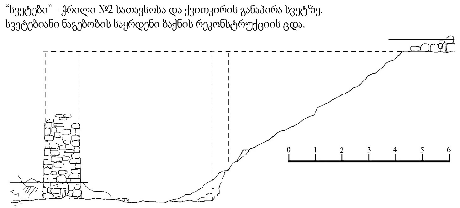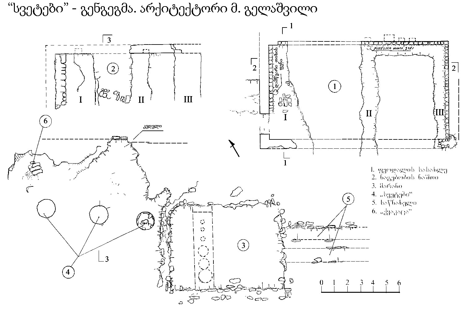 2005 წლის სექტემბერში ძეგლზე ჩატარდა სადაზვერვო-არქეოლოგიური სამუშაოები, რის შედეგადაც კომპლექსი მთლიანად გაიწმინდა ტყისაგან და გაიჭრა სადაზვერვო თხრილები. „სვეტების“ არქიტექტურულ კომპლექსზე დაკვირვება გვიჩვენებს, რომ იგი ორი ნაწილისაგან შედგება, რომლებიც სხვადასხვა დროსაა აგებული და მშენებლობის მეორე ეტაპზეა შერწყმული ერთმანეთთან. თავდაპირვლად აუგიათ სახლი (№1) და მარანი (№3). ამ ნაგებობათა ხუროთმოძღვრული ანალიზი საშუალებას იძლევა მათი აგების თარიღი VIII-X საუკუნეებით განისაზღვროს. რაც შეეხება მეორე სათავსოს (№2), გათხრების დროს სვეტების ირგვლივ მოპოვებული აღნაგობით მოხატული, ცისფრად მოჭიქული ჯამების ფრაგმენტები საშუალებას გვაძლევს ამ სახლის აგების თარიღი XI საუკუნის ახლო ხანებით განვსაზღვროთ.