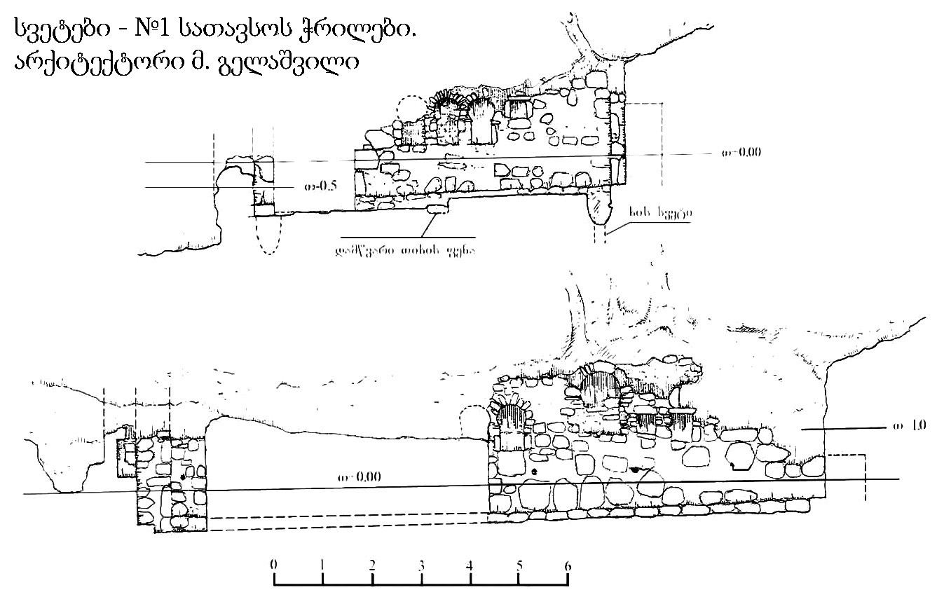 ა) №1 სათავსო გამოვლინდა №1 სათავსოს კონტურები: შემორჩენილია ზურგის და გვერდითი კედლების მოზრდილი ნაწილები. წინა (სამხრეთ-დასავლეთი) კედელი თითქმის მთლიანად წაშლილია. შემორჩენილა დასავლეთი კუთხე და სამხრეთ კუთხის ნაშთი საძირკვლის დონეზე. ამრიგად, გამოიკვეთა №1 სათავსოს მთელი პერიმეტრი. ზურგისა და გვერდითი კედლების გასწვრივ გამოვლინდა ქვითკირის „ტახტები“ და თიხატკეპნილი იატაკი, რაც საერთოდ დამახასიათებელია განვითარებული შუასაუკუნეების საცხოვრებელი სათავსოსათვის. იატაკის დონეზე დადასტურდა ნაცრიან-ნახშირიანი ფენა, რომელშიც აღმოჩნდა სხვადასხვა თიხის ჭურჭლის ფრაგმენტები.