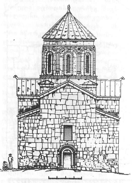 ეკლესია შიგნიდან მოგვიანებით შეულესიათ. შენობა გადახურულია ლორფინით. მარტივპროფილიანი ლავგარდანი გვიანდელია. აღმოსავლეთ ფასადის სარკმელი XIX საუკუნის ბოლოს გაუუქმებიათ და მის ნაცვლად მაღალი და განიერი სარკმელი გაუჭრიათ. გაუქმებული სარკმლისგან შემორჩენილია თაღები და თაღებზე აღმართული ჯვარი. სარკმლის თაღი სხივისებრად ნაწყობი ქვებითაა მიღებული. მასაც დეკორატიული თაღებით დამუშავებული თავსართი აქვს. გაგანიერებულია სამკვეთლოსა და სადიაკვნის სარკმლებიც. ფასადის მაღალ სარკმელს შემოუყვება ლილვებში მოქცეული არშია, რომელიც გარედან შეწყვილებული ლილვითაა მოჩარჩოებული. ლილვის კაპიტელები და ბაზისები ორნამენტირებულია. სარკმელთან სამი გირჩი და წრეში ჩასმული ჯვარია. დაბალი ცილინდრული გუმბათის ყელი გაწყობილია დეკორატიული თაღებით. შენობისათვის ოთხივე კეხზე მოგვიანებით ქვის ცხვრის თავები დაუდგიათ. ფასადებზე ძნელად გასარჩევი ასომთავრული, ნუსხური და მხედრული წარწერებია. მოგვიანბით არის აგებული ეკლესიის სამხრეთისა და დასავლეთის კარიბჭეებიც. სამხრეთ კარიბჭის მარცხნივ ეკლესიის რელიეფური გამოსახულებაა, თაღის ზემოთ ამოკვეთილია ჯვარი წარწერით `1889 წელი~.