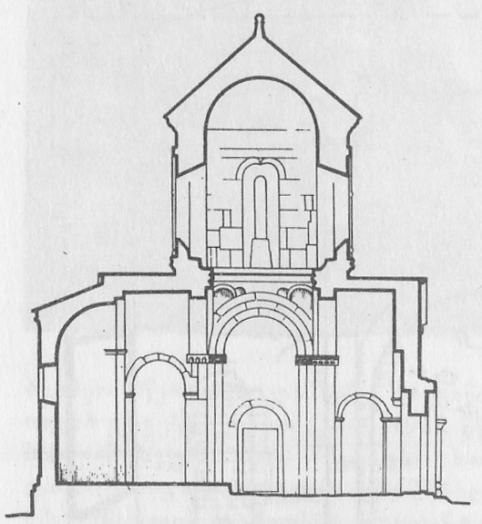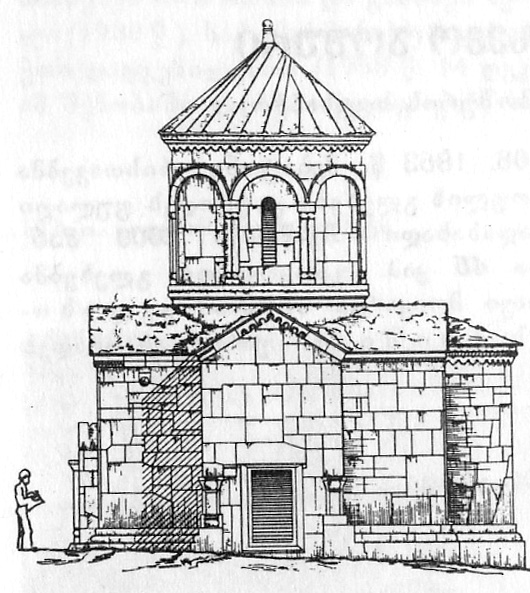 გუმბათის ყელზე, ჩრდილოეთით, სამი ლომია გამოსახული. გამოსახულებები სქემატურია. ფასადებზე ზოგან ჩუქურთმიანი ქვებია ჩართული. გუმბათის ყელს გრეხილლილვებიანი უწყვეტი თაღი შემოუყვება. გუმბათის ლავგარდანი მოჩუქურთმებულია. ეკლესიის ლავგარდანი შედგება სხვადასხვა დროის ფრაგმენტებისაგან. შენობა გადახურულია ლორფინებით. ჩრდილოეთ ფასადზე არსებული ასომთავრული წარწერის თანახმად ეკლესია მიქაელ ეპისკოპოსს აუგია. დაზიანებული წარწერები სხვა ფასადებზე და გუმბათის ყელზეც არის.