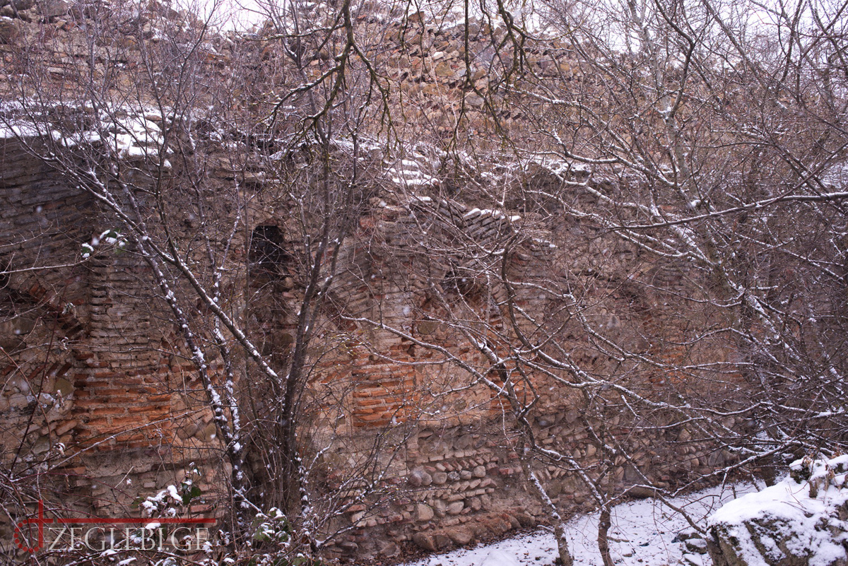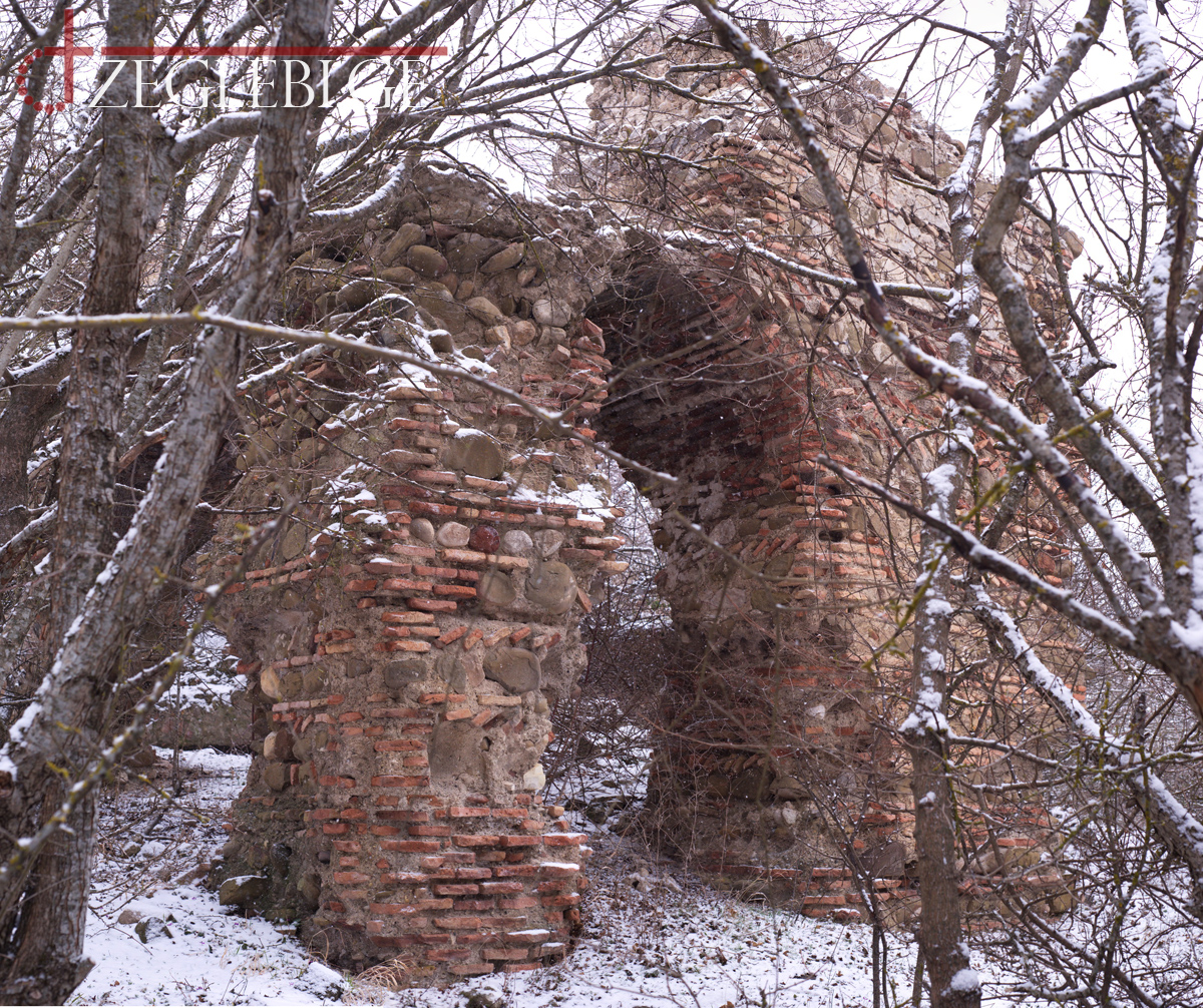 გ) ეკლესია, დგას სასახლის აღმოსავლეთით, 100 მეტრზე, ტყეში. განეკუთვნება გვიანდელ შუა საუკუნეებს. ეკლესია დარბაზულია (5.3 X7.6 მ), ნაგებია სხვადასხვა ზომის რიყის ქვის ირეგულარული წყობით. კედლები შიგნით და გარედან მობათქაშებული ყოფილა. ძლიერ დაზიანებულია: ჩამოშლილია კამარა, კონქის მნიშვნელოვანი ნაწილი და განივი კედლების ზედა ნაწილები. თითქმის მთლიანადაა დანგრეული გრძივი კედლები. შესასვლელი ეკლესიას სამხრეთიდან ჰქონია. აღმოსავლეთით, ნახევარწრიული აფსიდის ღერძზე და დასავლეთ კედელში თითო სწორკუთხა სარკმელია. აფსიდში, სარკმლის ორივე მხარეს, თითო პატარა სწორკუთხა ნიშია.