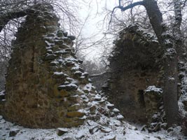 სასახლე, კოშკი, ეკლესია და რამდენიმე შენობის ნაშთი;