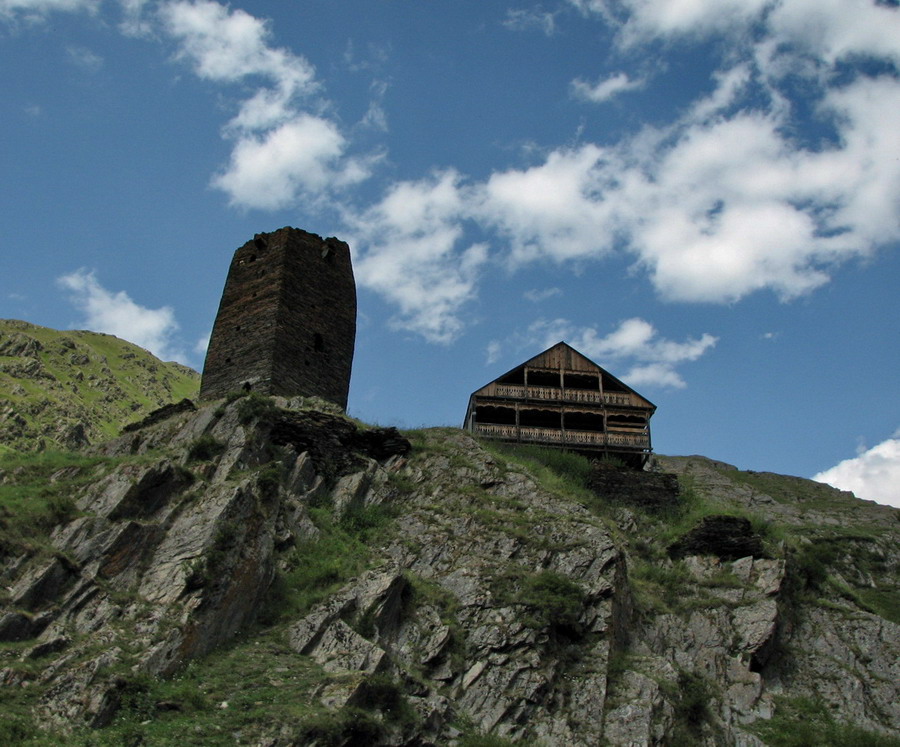 ა) ციხე-სახლი (4.15X4.3მ, სიმაღლე 6.5მ) ორსართულიანია, გეგმით ოთხკუთხა. I სართულზე შესასვლელი სამხრეთიდანაა, მიწის დონიდან 1.9 მ-ზე. I სართულზე დასავლეთ კედელში სათოფურია, აღმოსავლეთ კედლეში – ნიში. II სართულზე, ოთხსავე კედელში, თითო სათოფურია. სამხრეთ კელდელში – ერთი სარკმელი. სართულშუა გადახურვა ხის ყოფილა (შემორჩენილია კოჭების ბუდეები). სახლი გადახურულია ფიქლის ფილებით. სახურავი ცალფერდაა.