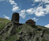 II. კოშკი დგას ნასოფლარის განაპირას, ჩრდილო-დასავლეთით. აგებულია გვიანდ. შუასაუკუნეებში. ოთხსართულიანია (სიმ. 16.5მ) ოთხკუთხა პრიზმის ფორმისაა და ზემოთკენ მკვეთრად ვიწროვდება, ფუძეში 5.3ხ4.8მ. ნაშენია ფიქლით – მკვრივად. წყობა მშრალია. ჩამოშლილია II და III სართულების გადახურვა, რომლებიც ხის კოჭებს ეყრდნობოდა. შესასვლელი I სართულზე დასავლეთიდანაა, მიწიდან 3 მ სიმაღლეზე. Kკარი ბრტყელი თაღითაა გადახურული. კარის ორივე მხარეს თითო, შიგნიდან თაღოვანი და გარეთ მკვეთრად დავიწროვებული სათოფურია მოწყობილი. მსგავსი ორ-ორი სათოფურია აღმოსავლეთ და ჩრდილოეთ კედელში, ხოლო ერთი _ სამხრეთ კედელში. სართული გადახურულია ჯვაროვანი კამარით, რომელშიც სამხრეთ-დასავლეთ კუთხესთან II სართულზე ასაძვრომი ხვრელია მოწყობილი. II სართულის დასავლეთ კედელში ერთი დაბალი, შეისრულთაღიანი სარკმელია, რომლის ორივე მხარეს, თითო, შიგნიდან თაღოვანი და გარეთ მკვეთრად დავიწროვებული, სათოფურია. Mმსგავსი ორ-ორი სათოფურია დანარჩენ კედლებში. III სართული მეორეს ანალოგიურადაა გადაწყვეტილი. IV სართულის ოთხივე კედლის შუაში ქვის კონსოლებზე დაყრდნობილი სწორკუთხა მაშიკულებია, რომელთა ზემოთ შეისრულთაღიანი სარკმელი – “სამზირი” გრძელდება. მაშიკულების გვერდებზე თითო სათოფურია. კოშკი გადახურულია საფეხურებიანი პირამიდისებრი სახურავით.