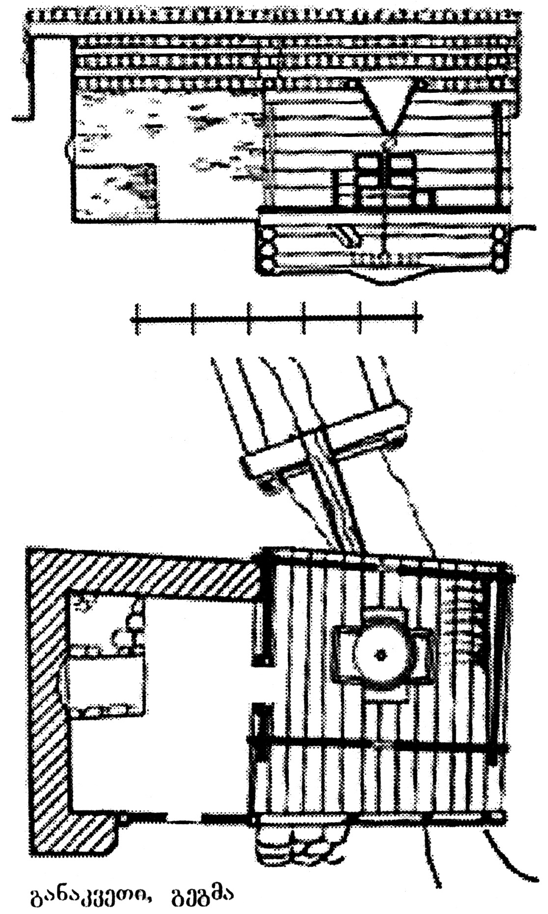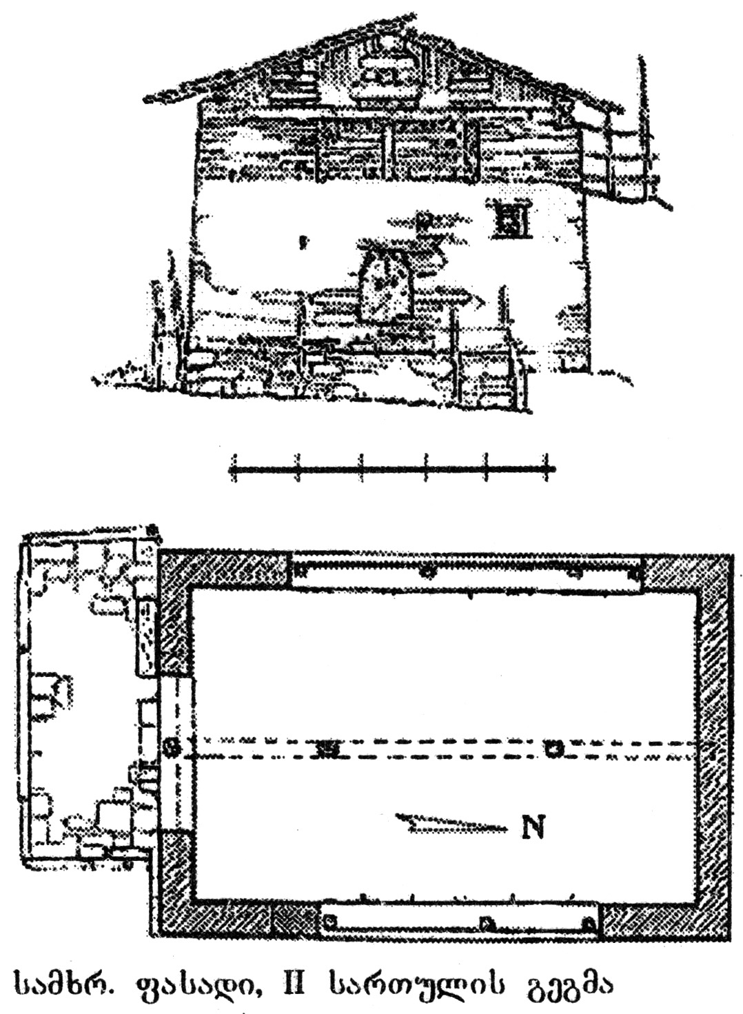 შელესილია ტიხრით, ორ ნაწილადაა გაყოფილი. მეორე სართული თივის შესანახად გამოიყენებოდა. პირველი და მეორე სართულები ერმანეთს სართულშუა გადახურვაში მოწყობილი ხვრელით უკავშირდება. მეორე სართულის კედლები, გარდა ჩრდილოეთისა, მთელ სიმაღლეზე გახსნილია. სამხრეთის ღიობის შუაში ხის ბოძია დადგმული, რომელსაც ღიობის გადამხურავი ხის ძელი ეყრდნობა. ამ ძელზე დადგმულია ხის მოკლე ძელებისაგან გამოყვანილი სვეტი, რომელზედაც დაყრდნობილია თავხე.