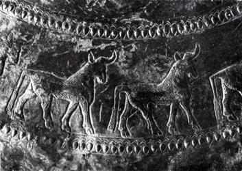 В памятниках искусства 3акавказья конца 2 и начала 1 тысячелетия до н.э. получил отражение культ неба и солнца. С ним тесно связаны изображения различных фантастических животных, гравированные на бронзовых поясах, найденных в Триалети и других местах. Сложные, ритмически построенные композиции охоты на фантастических животных, а также космические символы и знаки заключены в широкую орнаментальную рамку.