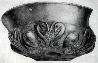 Серебряная чаша с лебедями из Казбегского клада. 6—5 вв. до н. э. Москва. Исторический музей. |