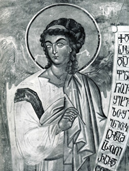 Ангел. Фреска храма Цаленджиха. Фрагмент. 14 в. |