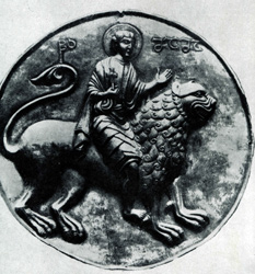 Св. Мамай на льве. Серебряный диск из Гелати. Тбилиси, Музей искусств. |