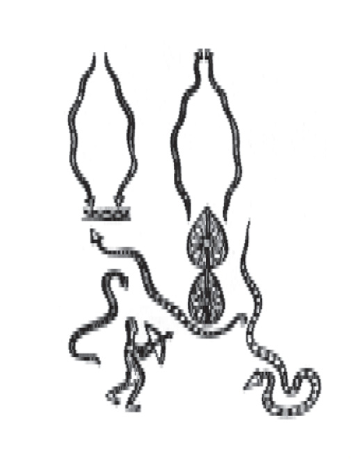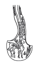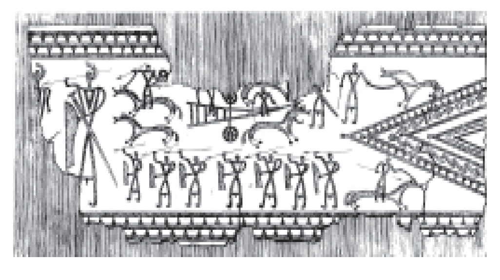 ზემოთ განხილული უმნიშვნელოვანესი კოსმოგონიური კონცეფციის სახვითი ხატი ბრძოლის სცენებში იყო გადმოცემული. არქაული ხელოვნების ძეგლებზე ასახული ცხოველთა ბრძოლა, ღვთაებრივი ნადირობა, ურჩხულის ან ვეშაპების დამარცხება, ყოვლისმომცველი კოსმოგონიური იდეის სიმბოლოდ გაიაზრებოდა. ამდენად, ეს იყო უდიდესი მნიშვნელობის მქონე კოსმოგონიური ნიშანი.