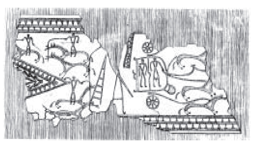 დეკორის აგებასა და მხატვრულ გადაწყვეტაში აქ მთელი რიგი სიახლეები იჩენს თავს. კომპოზიციაში შემოდის მარტივი სიუჟეტი და დგება იმ დროისათვის საკმაოდ რთული ამოცანა, რომელიც გულისხმობს სიბრტყეზე ადამიანთა და ცხოველთა განლაგებას, სიბრტყეზე ფიგურათა განაწილებას – კომპოზიციაში გამოყოფილია დიდი ზომის გამოსახულებები, ფიგურათა ცალკეული ჯგუფები. ოსტატის ამოცანას წარმოადგენს აგრეთვე მოძრაობის ჩვენება, სიმეტრიისა და მეტრის ელემენტების დაცვა.
