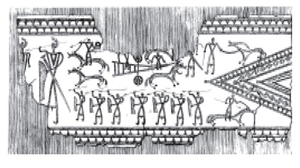 მითისთვის დამახასიათებელი დრამატული სამყარო მთელი სისრულით არის გადმოცემული ბრინჯაოს გრავირებული სარტყლების კომპოზიციებში.