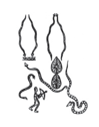 სარტყლების თანადროულ ყობანში აღმოჩენილ ერთ-ერთ ცულზე წარმოდგენილ კომპოზიციაშიც ქაოსთან ბრძოლა და კოსმოსის დამკვიდრების იდეა უნდა იყოს ჩადებული. ცულის პირზე გველებთან მებრძოლი ანთროპომორფული არსებაა წარმოდგენილი. არქაული ხანის ადამიანისათვის ქაოსი ხომ მტრული ძალებით დასახლებული გარესამყაროა. ამ ძალებთან ბრძოლა, მათი დამარცხება კი, ქაოსის დაძლევისა და კოსმოსის დამკვიდრების მაუწყებელი. სწორედ ამას გვაუწყებს იქვე აღმართული ხე, რომელიც ახლადშექმნილი სამყაროს სიმბოლურ გამოსახულებად უნდა მივიჩნიოთ.