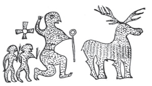 ამ ძეგლებზე სამყარო მთელი თავისი მრავალფეროვნებით არის წარმოდგენილი. ქაოსში დრაკონები სახლობენ, კოსმოსში-ღვთაებები. ისინი ადამიანური ცხოვრების წესს მისდევენ. ამიტომაც ხშირად არის წარმოდგენილი ღვთაებათა ცეკვა, რიტუალური პურობის ამსახველი სცენები, რაც შეიძლება გააზრებულ იქნეს, როგორც ინიციაცია, კოსმოგონიასთან ადამიანის დაკავშირების საკრალური საშუალება. აქვე, სამყაროს „დაბადებისა“ და ქაოსის დამარცხების პროცესიც არის ნაჩვენები – მონადირე ისარს უმიზნებს ირემს და კლავს მას.