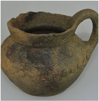 კოჭობი წარმოადგენს 5 სმ სიმაღლის ჭურჭელს, რომლის მუცლის დიამეტრი 4,5 სმ-ია, ძირისა 3,5 სმ, ყურის ზედა ბოლო მიძერწილი ყოფილა დაბალ, ოდნავ გადაშლილ პირზე. მხრის არე შემკულია ორ რიგად განლაგებული თევზიფხური ნაჭდევით, მუცელი კი მჭიდროდ განლაგებული დასვრეტილი მეჭეჭების რიგით (ტაბ. I,3). თიხა კარგად არის გამომწვარი, შიგთავსი წარმოადგენს ყვითელი ქვიშის და ორგანული ნაშთების ნარევს. დღეისათვის ძალზედ აქტუალურია პალინოლოგიური კვლევა, რადგან იგი გვაძლევს უაღრესად მდიდარ ინფორმაციას უძველესი ხალხის ყოველდღიური ყოფის შესახებ. სანამ უშუალოდ კვლევის შედეგებზე გადავიდოდით, ვფიქრობთ საინტერესო იქნება თუ თანმიმდევრობით გაგაცნობდით იმ ლაბორატორიულ სამუშაოებს, რომელსაც ჭურჭლიდან ამოღებული მიწა გადის [Rosch 2005]. გამოიყოფა სამი ეტაპი.