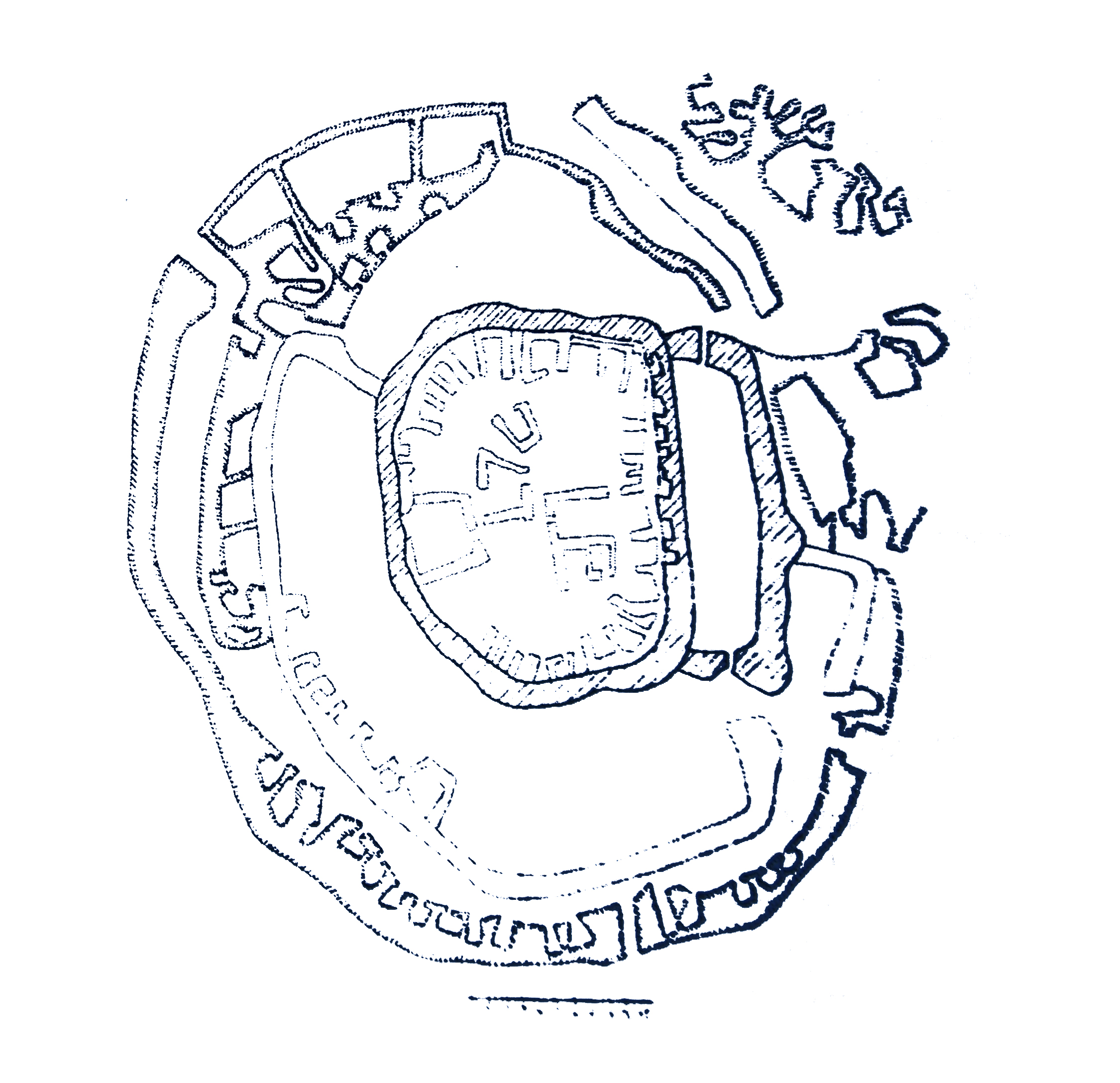 ჩრდილოეთით მყოფ სიმაგრის კედლებს ეტყობა ურარტული მშენებლობის გავლენა: სასიმაგრო კედლების შემაგრება საყრდენებით, კონტრფორსები ყოველ 7 მ-ზე. ნიშა კოშკის კიდეზე. გალავნის შიგნით, ურთიერთდაკავშირებულ ოთახებში აღმოჩნდა აუზი ფართობით 9 მ X 10 მ. ქვედა ფენებში გაითხარა კოლექტიური სამარხი ძვ. 3350-3305 წწ. ე.ი. ურარტული არქიტექტურის ქვეშ უნდა ყოფილიყო მტკვარ-არაქსის კულტურის დასახლება, რომელზედაც გადადის მე-II ათასწლეულის I ნახევრის კულტურული ფენა.
