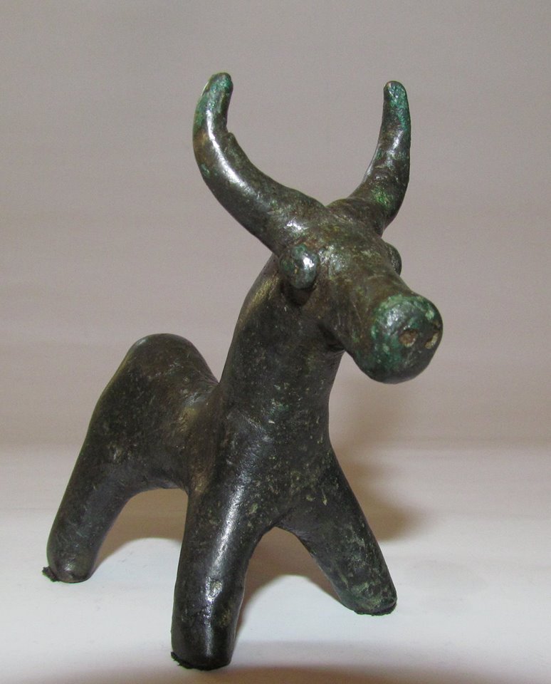 დეხვირის ბრინჯაოს ხარის ფიგურა მსხვილ და ღონიერ ფეხებზე დგას, კუდი მოკლე აქვს, კისერი და დრუნჩი - მსხვილი, თვალები - მრგვალი და რელიეფურია, რქები - მსხვილი დაზემოთ აშვერილი, სიმაღლე 7 სმ. სიგრძე 7 სმ. იგი კარგ მდგომარეობაშია, დაფარულია მწვანე პატინით. ბრინჯაოს ხარი გვიანბრინჯაო - ადრერკინის ხანის კოლხური ბრინჯაოს კულტურის ე.წ. ზოომორფული მცირე პლასტიკის ერთ-ერთი შესანიშნავი ნიმუშია.