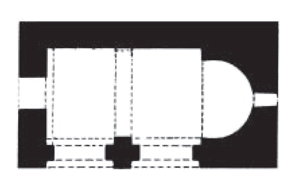 ბ) დასავლეთი (ზოგჯერ სამხრეთი) მხრიდან გახსნილობა;