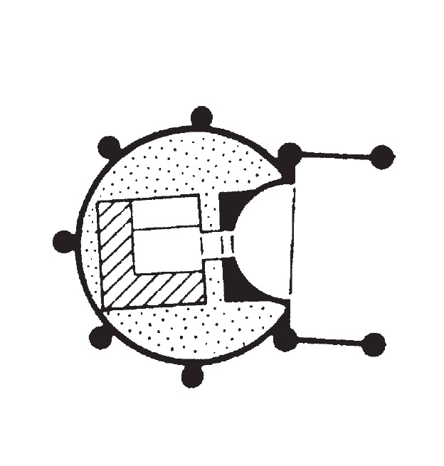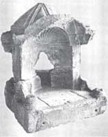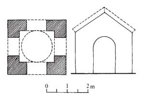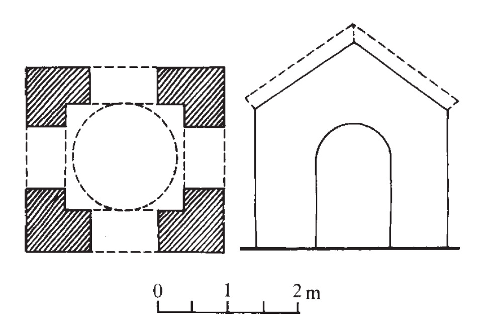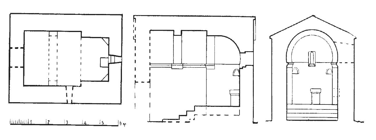 იერუსალიმში, IV საუკუნეში, კონსტანტინე იმპერატორმა უფლის საფლავზე სვეტებითა და თაღებით ყველა მხრიდან გახსნილი როტონდა ააგო. ცენტრში, საფლავსა ზედა, კუბიკულა აღმართა. ამ უკანასკნელის სარწმუნო რეკონსტრუქციით, კლდეში ნაკვეთ საფლავზე აღმართულ მოცულობას, წინ ღია აფსიდა ჰქონდა, რომელიც გარეთ, მიმსვლელებისკენ იყო მიქცეული – იგი ანგელოზის ქვაზე გამოცხადების ადგილსა და აღდგომის ნიშნად აკლდამის გადაცურებული კარის ადგილს აღნიშნავდა. მასში ტრაპეზი იყო გამართული. ამ ნაგებობის V საუკუნის ქვის ერთ-ერთ მოდელზე აფსიდა ღია ბალდახინით გრძელდება და ჩვენი ეკლესიებივით ორქანობად გვირგვინდება. ქართული ეკლესიები, საფიქრებელია, სწორედ უფლის საფლავის ნაგებობას უკავშირდებიან, მისი ძირითადი სტრუქტურა – წმინდა საფლავზე აღმართული აფსიდიანი გამჭოლი მოცულობა – უნდა ქცეულიყო ქართველ ხუროთმოძღვართათვის იკონოგრაფიულ და შემოქმედებით იმპულსად ზემომოტანილი ეკლესიების მშენებლობისას.