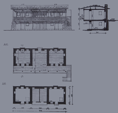 სამივე ოთახში უკანა კედლის სისქეში მოწყობილია ბუხარი. შენობას მიშენებული აქვს ხის ლოჯია ორი პატარა ოთახით, რომლთა კედლის ფიცრები კუთხეებში დამაგრებულია ჭდობით „ქილიქების“ საშუალებით.