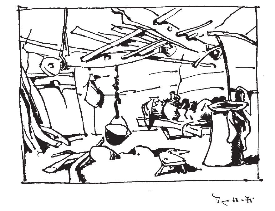 მართალია, ოდა-სახლში დამცრობილია, მაგრამ არასგზითაა გამქრალი იმ სახის “ტაძრულობა~, რომელიც დარბაზს ახასიათებს დიდი სისრულით.