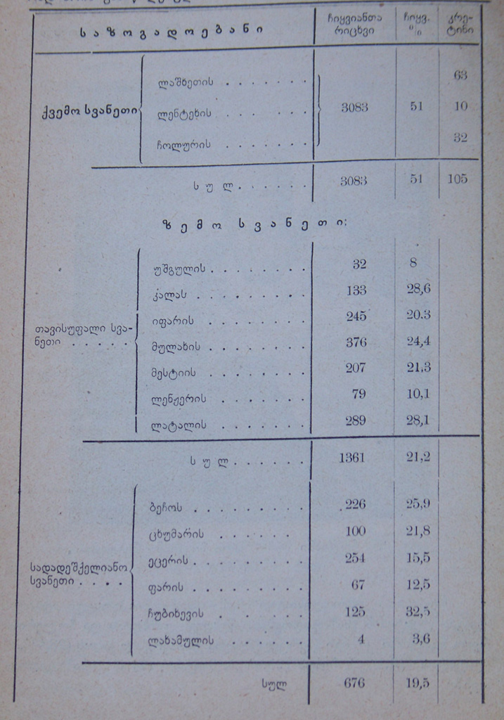საერთოდ მთელ სვანეთში ჩიყვიანთა რაოდენობა უდრის მოსახლეობის 30% (5.120 კაცი)