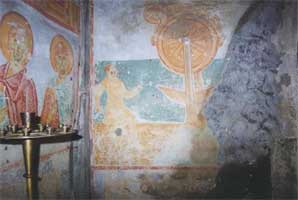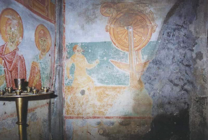 აჭის ეკლესიიდან ჩემი ყურადღება მიიპყრო კედლის ბაზილიკურმა ფრესკებმა მე-13 საუკუნისას წარწერები ფრესკებზე ბერძნულად არის შესრულებული. მათ მხატვრობაში ჭარბობს ოქროსფერი, წითელი და ნათელი მწვანე ფერები, აჭის ეკლესიაში არის ფრესკები, რომლებზეც გამოსახულია წმინდა გიორგის ბორბალზე წამების ფრესკა და ქრისტეს მიერ 12 მოციქულის მეორედ მოსვლის განკითხვა.