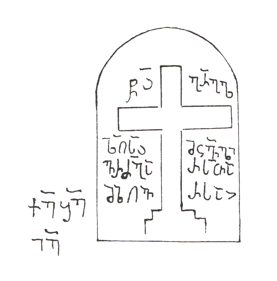 კვარცხლბეკის ქვედა საფეხურის სიგრძე-სიგანე 1 მეტრი იყო, ზედასი - 70 სანტიმეტრი. მის დასავლეთ კედელზე დაწყებული სამსტრიქონიანი ასომთავრული წარწერა სამხრეთ კედელზე ორი სტრიქონით მთავრდებოდა. ის შეიძლება ასე წავიკითხოთ: „ქრისტე, რომლისა მიერ მოვიგე, ძელია პატიოსანი, რომელი ქვეშე ვჰმარხივარ მესხაჲ ვარ შაოსანი, არზნ ამას ვიკადრებ ღარიბი, არშვილოსანი“. სამხრეთის გვერდის პირველ სიტყვას, თუ ასოთა ჯგუფს „არზნ“ რაღაც აკლია, ან ქარაგმის ქვეშ იგულისხმება. წარწერის სამ სტრიქონს დასავლეთის მხარეს, განკვეთილობის ნიშნები თუმცა არ ახლავს, მაინც შეინიშნება სიტყვების დაშორება. სამხრეთით კი, ასონიშნები ერთმანეთთან მიჯრითაა ამოკვეთილი, ამიტომ ხელოსანს ბოლოში თავისუფალი ადგილიც კი დარჩენია. აქ პირველი შვიდი ასოა „არზნამს“, რომელსაც ორგან ქარაგმის ნიშანი აზის. ვფიქრობ, ასოთა ეს ჯგუფი უნდა წავიკითხოთ ასე: „არზანგად ამას“, ე.ი. სიტყვა არზანგი, სულხან-საბა ორბელიანის განმარტებით, „არძანგი, არძანიგი და არზანგი სამივე საჴდომელსა პატივსა ეწოდების კაცთათვის ღირსებისაებრ მათისა“ ახალი სპარსულიდან ქართულში შემოსული ეს სიტყვა „ღირსება“, „ხარისხის“ მნიშვნელობით გვხვდება წერილობით წყაროებში. ან სიტყვის ვარაუდი აზრობრივადაც გამართლებული ჩანს: „არზანგად ამას ვიკადრებ“, ე.ი. ღირსეული პატივი იქნება ეს ჯვარი ჩემთვისო. საბოლოოდ წარწერა ასეთ სახეს მიიღებს: