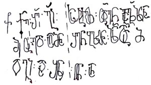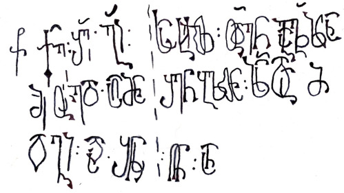 | ქ: ზე ადიდენ ღ(მერთმა)ნ მეფ{ე}თა მეფ(ო)ბა დიდისა ალ{ე}ქს{ა}ნდრეს{ი} | რ(ომლ)ისა მ(იე)რ კ(უალა)დ აღეშენა ს(ა)ყდ(ა)რი ესე ად{ი}დენ ღ{მერთმა}ნ და ს(უ)ლი მ(ა)თი კ{ურთ}ხ{ეუ}ლ ყოს. |