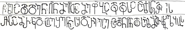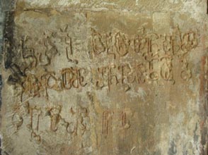 შედარებისათვის აქვე მოვიტანთ ალექსანდრე დიდის სამშენებლო წარწერას, რომელიც მოთავსებულია კარიბჭეში, ტაძრის დასავლეთის შესასვლელი კარის თავზე, იატაკის დონიდან 278 სმ. სიმაღლეზე.