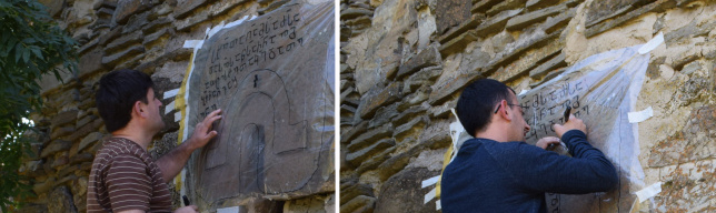 თავდაპირველად, წარწერა გავასუფთავეთ ხავსისაგან, რამაც საშუალება მოგვცა ჩვენთვის საინტერესო წარწერა თავიდან ბოლომდე სრულად წაგვეკითხა. ამის შემდგომ მოვამზადეთ მისი ტექნიკური აღწერილობა, დავამზადეთ მისი პალეოგრაფიული ასლი და გადავიღეთ წარწერის მაღალი გარჩევადობის ფოტოები.