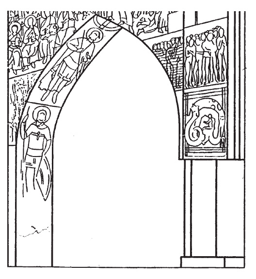 ბუნებრივია, ალბათ, რომ ამგვარი საერთო განწყობილების უფრო შესაფერისად სწორედ მთავარი კარით მოსულთათვის ცხოვნების ხატების დახვედრება მიიჩნიეს. და მართლაც, დღევანდელ დღეს სამოთხის მჭვრეტელ ადამიანს თვალსა და გულს უმძიმებს თითქოს ჯოჯოხეთის კვლავ თავჩენილი კრებითი ხატი.